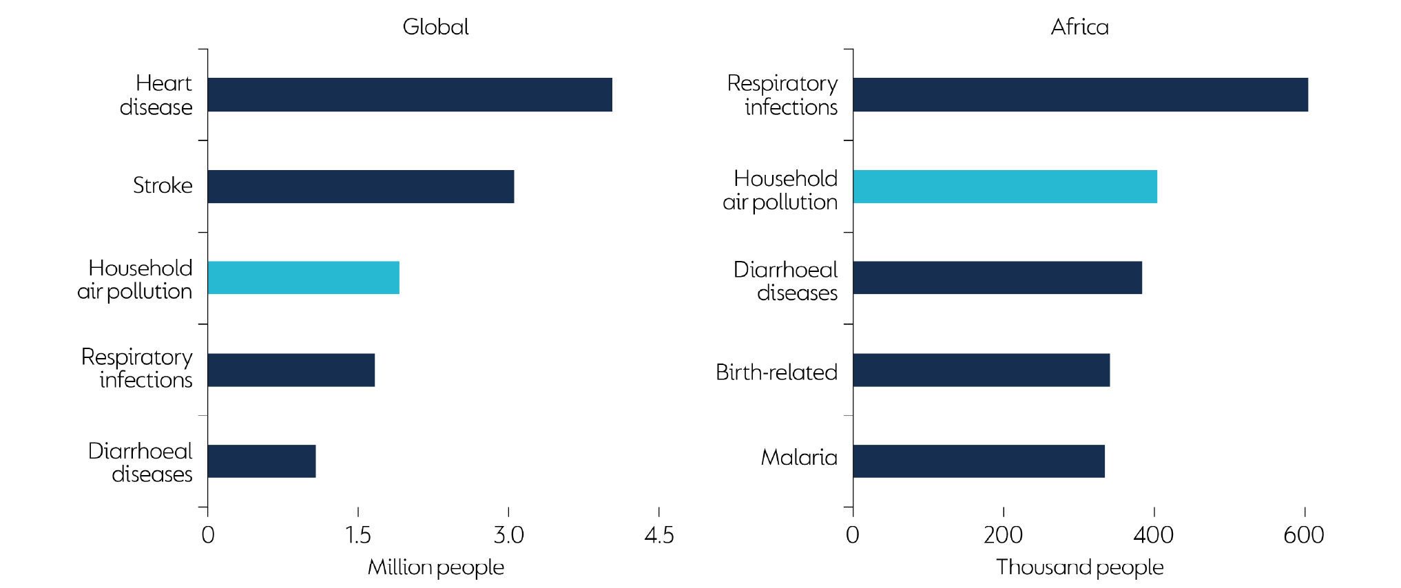 Household air pollution was responsible for an estimated 3.2 million deaths p.a., including over 237 000 deaths of children under the age of 5.