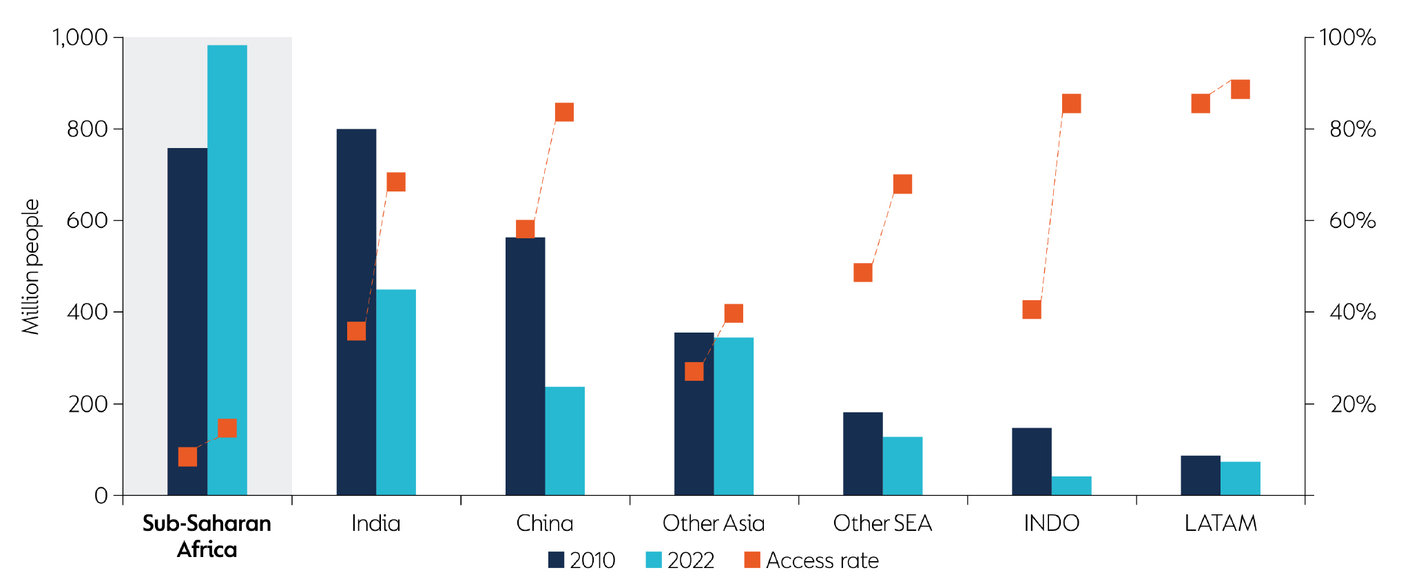 Sub-Saharan Africa is the only region that has seen an increase in population without access to clean cooking since 2010.