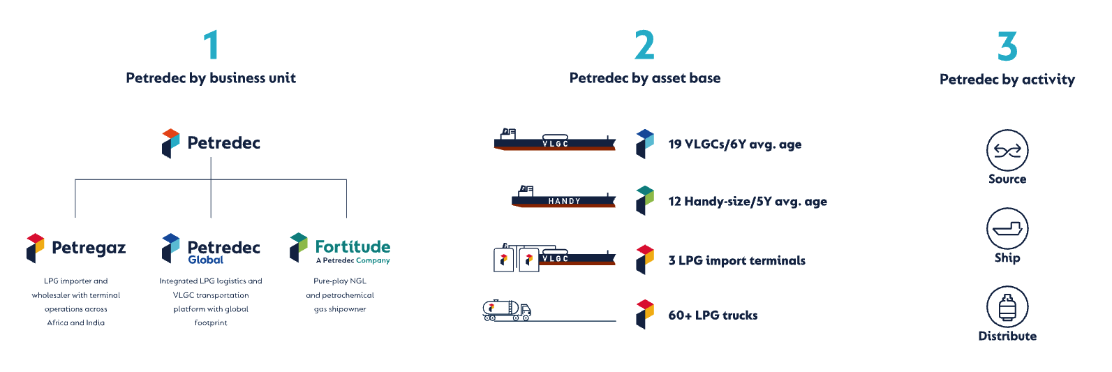 Petredec is a global, integrated LPG company which trades, transports and distributes LPG to a variety of customers and can be summarised as follows: